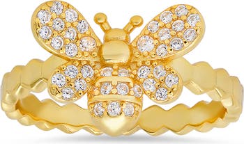 Pavé cubic zirconia amp up the sparkle of a sweet bumblebee ring crafted from polished 14-karat gold-plated sterling silver.