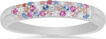 A collection of multicolored faceted stones adds a burst of color to this pavé ring that'll bring statement shine to your look.