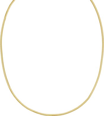 A snake chain necklace crafted from gleaming 14-karat gold makes a modern addition to your stack.