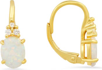 A lustrous opal and cubic zirconias add to the shine of polished leverback earrings that instantly elevate any ensemble.
