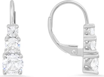 Sterling Silver Triple Cubic Zirconia Leverback Earrings
