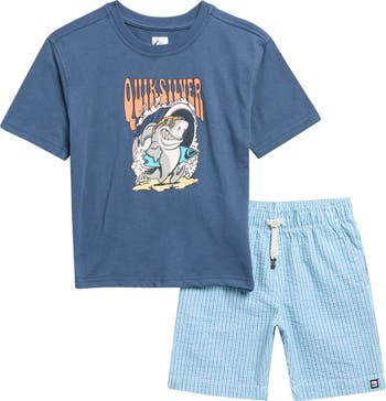 Give your kid beach-ready style with this fun graphic T-shirt and drawstring-waist shorts set.