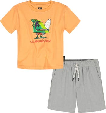 Give your kid beach-ready style with this fun graphic T-shirt and drawstring-waist shorts set.