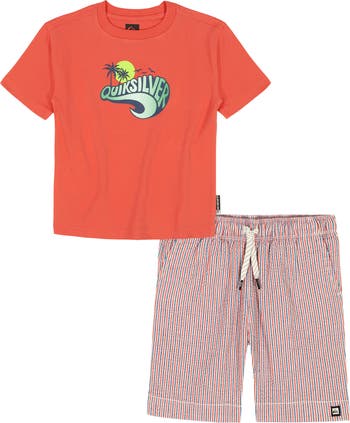 Give your kid beach-ready style with this fun graphic T-shirt and drawstring-waist shorts set.