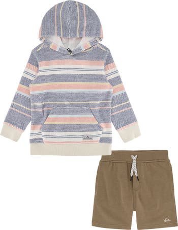 Laid-back days call for this easy cotton-blend set of a striped hoodie and pull-on shorts.
