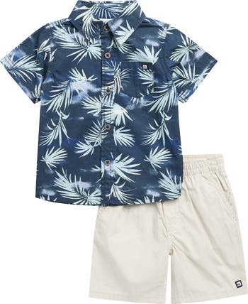 Baby can be resort-ready every day of the week in this casual set pairing a tropical button-up shirt with coordinating woven shorts cut from breezy cotton.