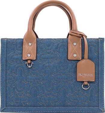 Horseshoe embroidery brings brand-signature appeal to a structured tote bag topped with smooth carry handles and a removable crossbody strap for convenient hands-free wear.