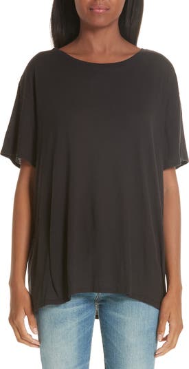 A kiss of cashmere lends sumptous softness to a slouchy boyfriend tee.