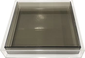 This double layered encased lucite tray is a gorgeous addition to organize your desk or vanity table.