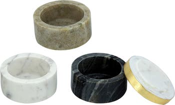 Keep your trinkets and treasures neatly stored in this stackable set of three marbled jars.