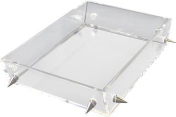 Lucite Small Silver Stud Tray Size 10" x 8" x 2"