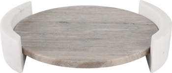 Cool and contemporary, this round marble tray accented with oversized marble handles is perfect for entertaining or displaying.