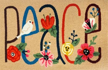 Chirping birds and peaceful script bring happiness and cheer to this doormat that's UV protected to make it suited for indoor or outdoor use.