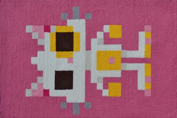 Give your kiddo the perfect entryway to their bedroom or bathroom with this charming doormat detailed with a pixelated cat.