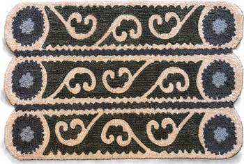 Tough enough for use outside on terraces or by the pool, this scalloped mat is soft enough to use inside in a bathroom, kitchen or entryway.