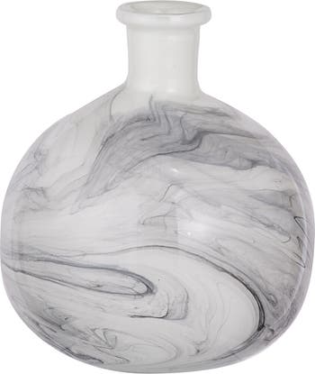 Smoky black and white lines swirl through this artistic ceramic vase, almost as if it were carved from high-end marble. The traditional shape makes this piece perfect for display on its own, or you can use this lovely vase to display a fresh flower cutting or dried botanical arrangement. The smooth round shape makes this a versatile accent.