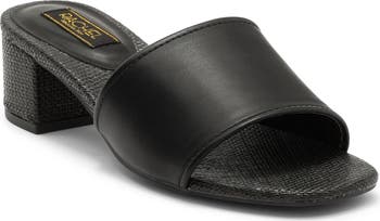 A squared-off toe and wrapped block heel bring walkable balance to a minimalist slide sandal perfect for your warm-weather looks.