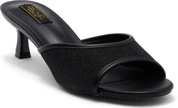 Perfect for warm-weather occasions, this elegant slide sandal is framed by an airy mesh vamp strap and lifted by a modest heel.