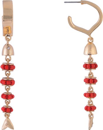 Fish-shaped drops adorned with pretty glass beads bring warm-weather charm to earrings done in a high-shine finish.