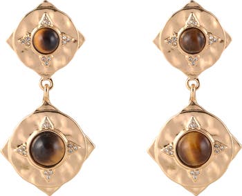 Lightweight and eye-catching, these day-to-night double drops feature a semiprecious stone surrounded by a trio of white crystals.