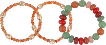 Glamorize your everyday stack with this trio of assorted stretch bracelets strung with pretty aventurine beads and polished charms.