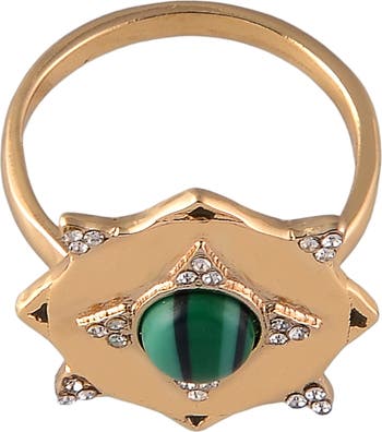 Rich green hues and natural striations add an earthy elegance to this cocktail ring made in a warm goldtone plate.