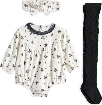 - Includes romper, socks and headband