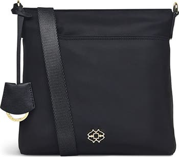 Scottie dog hardware puts subtle branded charm on this slender crossbody bag made from recycled nylon and a durable webbed strap.