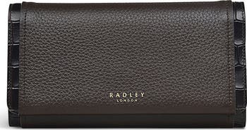 A structured flap shapes this pebbled leather wallet outfitted with card slots and a spot for cash.