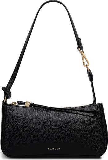 Pebbled leather with a metallic finish offers a sleek, functional style designed for taking to the out of the office. A clip-lock along the strap allow you to easily update for off-the-shoulder styling.