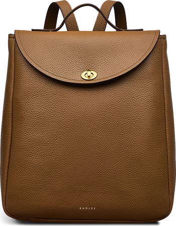 A streamlined silhouette shapes a pebbled leather backpack designed with a slim profile and flat base. Easy-to-wear shoulder straps make this style a commuter favorite.
