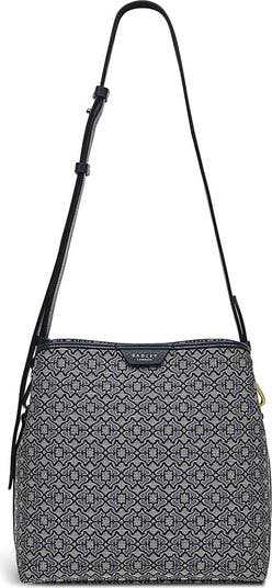 Heirloom jacquard knit adds polished sophistication to a spacious shoulder bag featuring an adjustable crossbody strap for convenient hands-free wear.