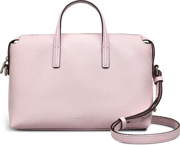 Pebbled leather adds polished sophistication to a spacious shoulder bag featuring a removable crossbody strap for versatile wear.