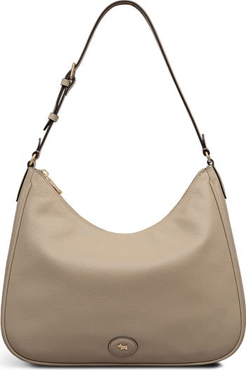 A mix of smooth and pebbled leather add polished sophistication to a spacious shoulder bag featuring a wide shoulder strap for comfortable wear.