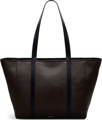 A secure top zipper shapes the silhouette of a slouchy pebble-grain leather tote bag designed with a spacious interior for a work-friendly finish.