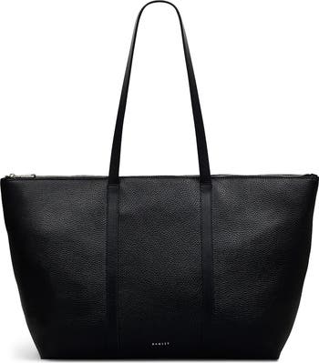 Two slim carry handles offer carrying convenience, while the roomy interior provides plenty of space for essentials while you're on the go with this grained leather tote.
