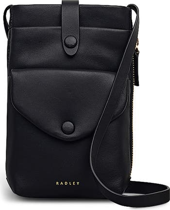 A crossbody bag designed to carry your phone and other small essentials is crafted from smooth leather with simple details for a sophisticated look.
