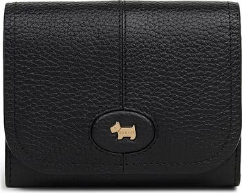 A signature Scottie dog stud punctuates the flap of this leather wallet outfitted with card slots and a zip pocket for security and organization.