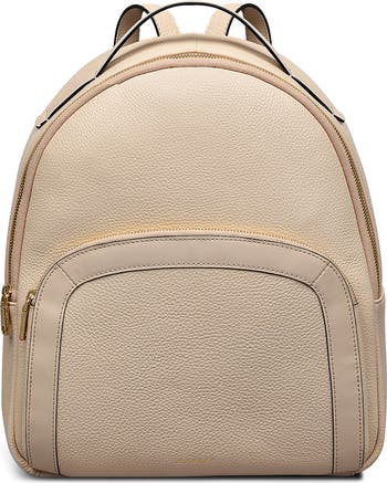 A slim profile and secure zip closure define a chic backpack made from pebble-grain leather and designed to be durable with a water-resistant finish.