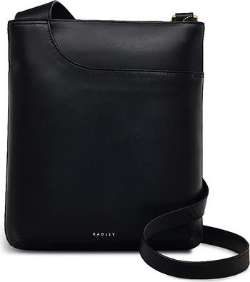 Smooth calfskin leather adds sophisticated polish to a well-organized crossbody bag topped outfitted with an adjustable strap for hands-free wear.