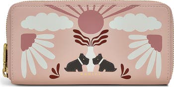 Stylishly organize your cards and cash in this continental leather wallet adorned with signature Scottie dog appliqués and a rising sun motif.