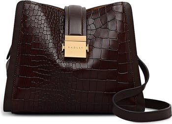 This crossbody bag shaped from croc-embossed leather features a structured silhouette and a mid-sized interior for organizing your everyday belongings neatly.