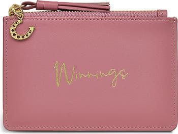 A foil script makes this zip wallet ready for Derby Day made from a soft shade of leather and equipped with secure storage for cards, cash and coins.