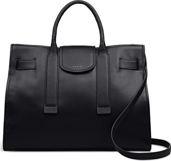 A mix of smooth and pebbled leather add polished sophistication to a spacious tote bag featuring a removable crossbody strap for versatile wear.