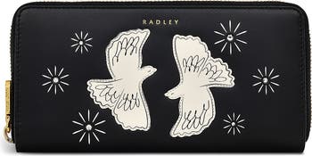 Keep your cash, cards and monetary essentials organized and secure with this festive leather wallet detailed with appliqués of two flying turtle doves.
