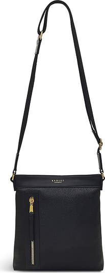 An exterior zip pocket allows for quick and easy access to your essentials in this crossbody bag shaped from grained leather rendered in an inky hue.