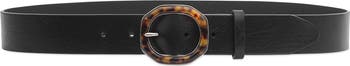 Put a simple yet polished finish on your look with this sleek leather belt that fastens with a chic tortoise pattern buckle.