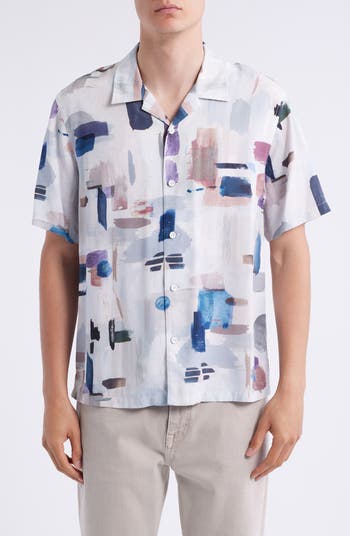 • TravisMathew Across the Pond Geo Print Short Sleeve Stretch Button-Up Shirt