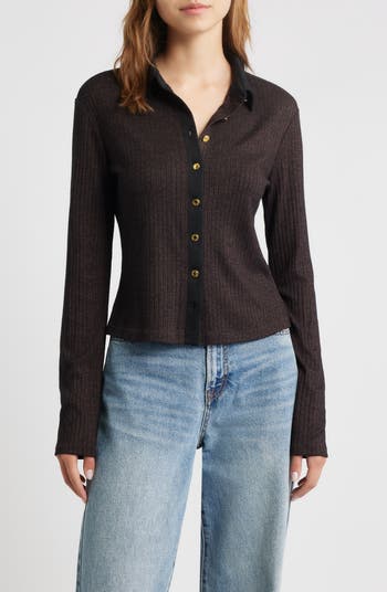 Contrast Trim Rib Button-Up Shirt
