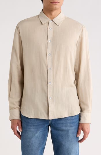 A striped collar, cuffs and placket bring contemporary attitude to this button-up shirt cut from breathable cotton for daylong comfort.